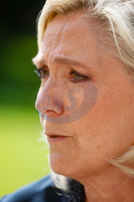 Marine Le Pen et Jordan Bardella sortent de leur entretien avec le président de la République à l'Elysée le 26 août 2024. © Christophe Clovis / Bestimage