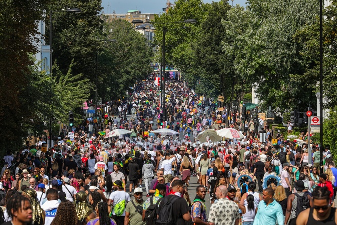 London,UK, 26th Aug 2024. The route begins to get crowded in the early afternnoon. Notting Hill Carnival on Monday sees the main carnival procession of mas bands, drummers and Caribbean and South American Salsa, Samba and Soca groups. Revellers celebrate the Bank Holiday Weekend participating or watching along the carnival route, at sounds systems, stalls and venues on the second of two days of Notting Hill Carnival festivities., Credit:IMAGEPLOTTER / Avalon