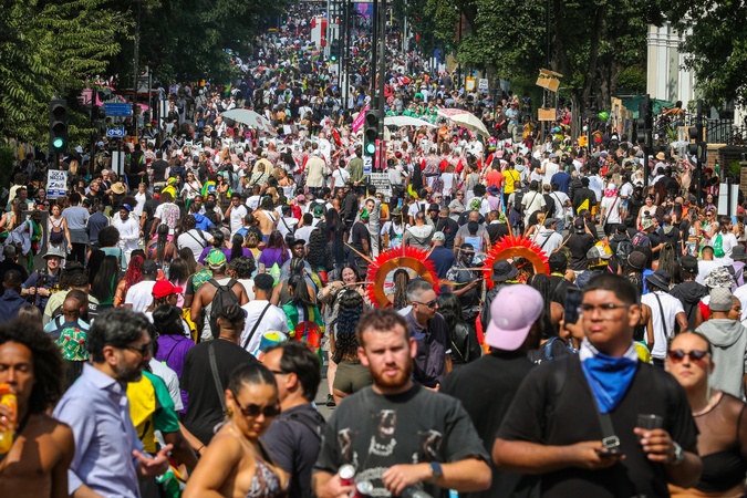 London,UK, 26th Aug 2024. The route begins to get crowded in the early afternnoon. Notting Hill Carnival on Monday sees the main carnival procession of mas bands, drummers and Caribbean and South American Salsa, Samba and Soca groups. Revellers celebrate the Bank Holiday Weekend participating or watching along the carnival route, at sounds systems, stalls and venues on the second of two days of Notting Hill Carnival festivities., Credit:IMAGEPLOTTER / Avalon