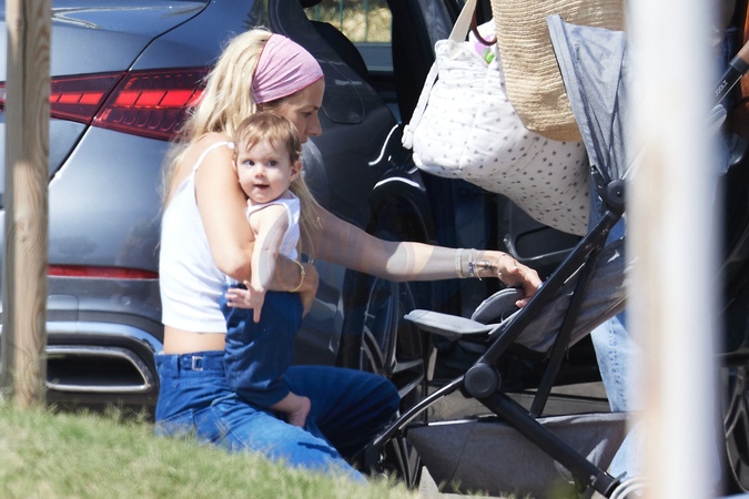 Exclusif - Prix Spécial - No Credit - BI - Sienna Miller, son compagnon Oli Green et leur fille de sept mois prennent un vol à l'aéroport de Nice, le 24 août 2024. Déjà maman d'une fille de 11 ans, née de sa relation avec T.Sturridge, Sienna Miller a retrouvé les joies de la maternité, le 3 janvier dernier avec son cher et tendre, Oli Green. Merci de filouter le visage des enfants avant publication Exclusive - Special Price - No Credit - BI - Sienna Miller, her partner Oli Green and their seven-month-old daughter take a flight at Nice airport on August 24, 2024. Already the mother of an 11-year-old daughter, born from her relationship with T. Sturridge, Sienna Miller rediscovered the joys of motherhood on January 3 with her dear and tender, Oli Green. Please pixelate children faces before publication.