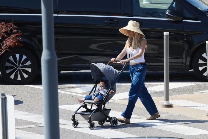 Exclusif - Prix Spécial - No Credit - BI - Sienna Miller, son compagnon Oli Green et leur fille de sept mois prennent un vol à l'aéroport de Nice, le 24 août 2024. Déjà maman d'une fille de 11 ans, née de sa relation avec T.Sturridge, Sienna Miller a retrouvé les joies de la maternité, le 3 janvier dernier avec son cher et tendre, Oli Green. Merci de filouter le visage des enfants avant publication Exclusive - Special Price - No Credit - BI - Sienna Miller, her partner Oli Green and their seven-month-old daughter take a flight at Nice airport on August 24, 2024. Already the mother of an 11-year-old daughter, born from her relationship with T. Sturridge, Sienna Miller rediscovered the joys of motherhood on January 3 with her dear and tender, Oli Green. Please pixelate children faces before publication.