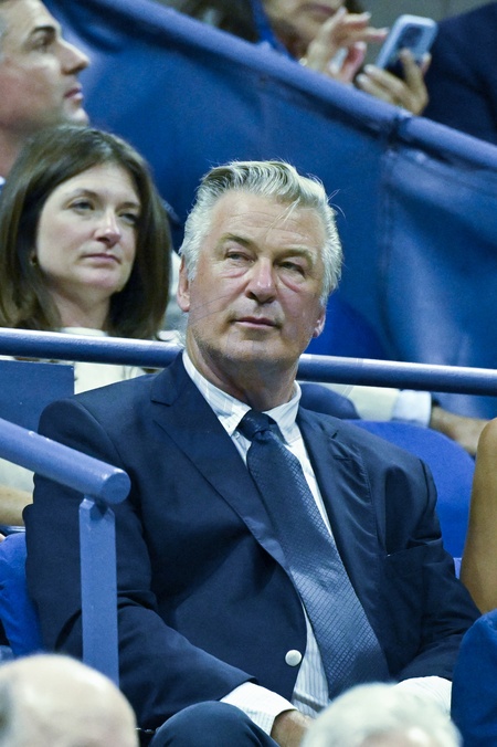 Alec Baldwin et sa femme Hilaria regardent le match de tennis entre N.Djokovic et R.Albot lors de la 144ème édition de l'US Open à l'USTA National Tennis Center, à Flushing Meadows le 26 août 2024. © Chryslene Caillaud / Panoramic / Bestimage Alec Baldwin and his wife Hilaria watch the tennis match between N.Djokovic and R.Albot during the 144th edition of the US Open at the USTA National Tennis Center in Flushing Meadows on 26 August 2024.