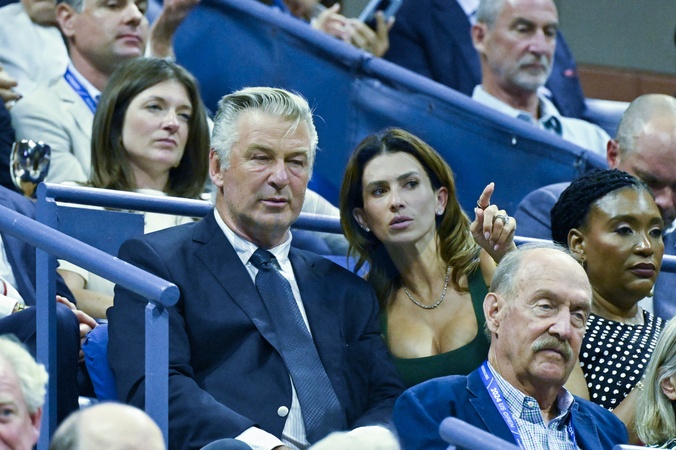 Alec Baldwin et sa femme Hilaria regardent le match de tennis entre N.Djokovic et R.Albot lors de la 144ème édition de l'US Open à l'USTA National Tennis Center, à Flushing Meadows le 26 août 2024. © Chryslene Caillaud / Panoramic / Bestimage Alec Baldwin and his wife Hilaria watch the tennis match between N.Djokovic and R.Albot during the 144th edition of the US Open at the USTA National Tennis Center in Flushing Meadows on 26 August 2024.