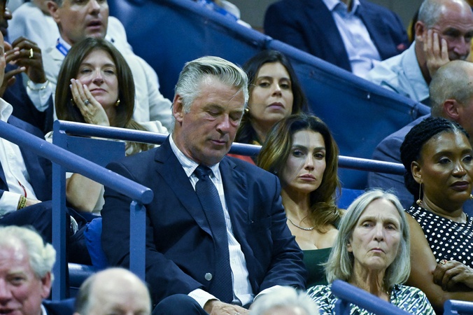 Alec Baldwin et sa femme Hilaria regardent le match de tennis entre N.Djokovic et R.Albot lors de la 144ème édition de l'US Open à l'USTA National Tennis Center, à Flushing Meadows le 26 août 2024. © Chryslene Caillaud / Panoramic / Bestimage Alec Baldwin and his wife Hilaria watch the tennis match between N.Djokovic and R.Albot during the 144th edition of the US Open at the USTA National Tennis Center in Flushing Meadows on 26 August 2024.