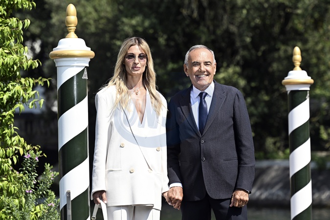 Sveva Alviti (L) and Festival Director Alberto Barbera (R) pose for photographers at Lido Beach ahead of the 81st annual Venice International Film Festival, in Venice, Italy, 27 August 2024, Credit:Maria Laura Antonelli / Avalon