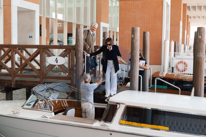 Sigourney Weaver, która za swoją karierę otrzyma honorowego Złotego Lwa, przybywa do Lido przed 81. Międzynarodowym Festiwalem Filmowym w Wenecji (Mostra