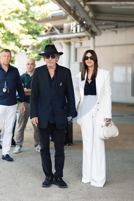 Monica Bellucci et son compagnon Tim Burton arrivent au Lido lors du 81ème Festival International du Film de Venise (Mostra), le 27 août 2024. Le film "Beetlejuice Beetlejuice" sera projeté lors de la cérémonie d'ouverture. © Tiziano Da Silva / Bestimage Monica Bellucci and her partner Tim Burton arrive at the Lido during the 81st Venice International Film Festival (Mostra) on August 27, 2024. The film "Beetlejuice Beetlejuice" will be screened during the opening ceremony.