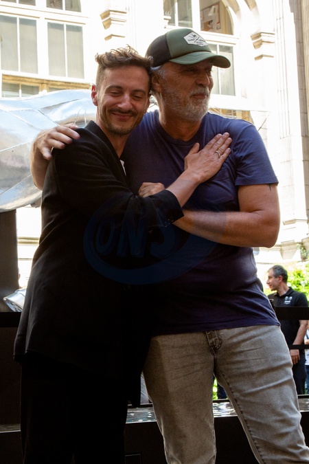 Thomas Jolly et Thierry reboul - Inauguration de l'exposition "Zeus / Ville de Paris", le cheval métallique de la cérémonie d'ouverture des Jeux Olympiques Paris 2024, à l'Hôtel de Ville de Paris. Le 27 août 2024 L'exposition sera ouverte gratuitement du 29 août au 8 septembre. © Céline Bonnarde / Bestimage Inauguration of the exhibition "Zeus/ Ville de Paris", the metallic horse of the opening ceremony of the Olympic Games Paris 2024, at the Hôtel de Ville in Paris. August 27, 2024 The exhibition will be open free of charge from 29 August to 8 September.