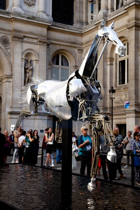 Illustration - Inauguration de l'exposition "Zeus / Ville de Paris", le cheval métallique de la cérémonie d'ouverture des Jeux Olympiques Paris 2024, à l'Hôtel de Ville de Paris. Le 27 août 2024 L'exposition sera ouverte gratuitement du 29 août au 8 septembre. © Céline Bonnarde / Bestimage Inauguration of the exhibition "Zeus/ Ville de Paris", the metallic horse of the opening ceremony of the Olympic Games Paris 2024, at the Hôtel de Ville in Paris. August 27, 2024 The exhibition will be open free of charge from 29 August to 8 September.