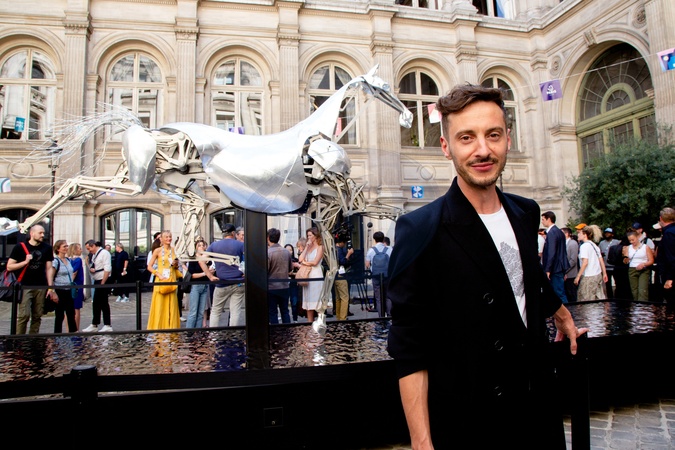 Thomas Jolly - Inauguration de l'exposition "Zeus / Ville de Paris", le cheval métallique de la cérémonie d'ouverture des Jeux Olympiques Paris 2024, à l'Hôtel de Ville de Paris. Le 27 août 2024 L'exposition sera ouverte gratuitement du 29 août au 8 septembre. © Céline Bonnarde / Bestimage Inauguration of the exhibition "Zeus/ Ville de Paris", the metallic horse of the opening ceremony of the Olympic Games Paris 2024, at the Hôtel de Ville in Paris. August 27, 2024 The exhibition will be open free of charge from 29 August to 8 September.