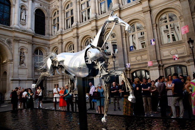 Illustration - Inauguration de l'exposition "Zeus / Ville de Paris", le cheval métallique de la cérémonie d'ouverture des Jeux Olympiques Paris 2024, à l'Hôtel de Ville de Paris. Le 27 août 2024 L'exposition sera ouverte gratuitement du 29 août au 8 septembre. © Céline Bonnarde / Bestimage Inauguration of the exhibition "Zeus/ Ville de Paris", the metallic horse of the opening ceremony of the Olympic Games Paris 2024, at the Hôtel de Ville in Paris. August 27, 2024 The exhibition will be open free of charge from 29 August to 8 September.