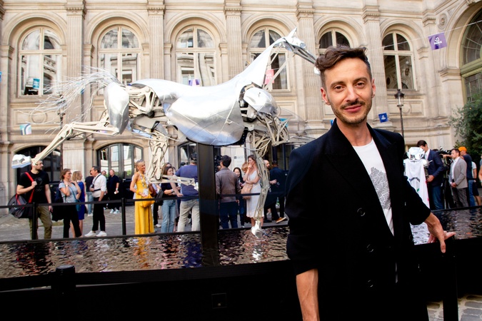 Thomas Jolly - Inauguration de l'exposition "Zeus / Ville de Paris", le cheval métallique de la cérémonie d'ouverture des Jeux Olympiques Paris 2024, à l'Hôtel de Ville de Paris. Le 27 août 2024 L'exposition sera ouverte gratuitement du 29 août au 8 septembre. © Céline Bonnarde / Bestimage Inauguration of the exhibition "Zeus/ Ville de Paris", the metallic horse of the opening ceremony of the Olympic Games Paris 2024, at the Hôtel de Ville in Paris. August 27, 2024 The exhibition will be open free of charge from 29 August to 8 September.