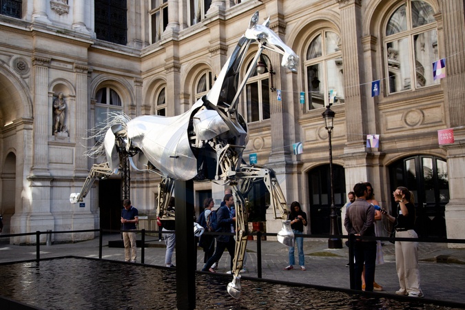 Illustration - Inauguration de l'exposition "Zeus / Ville de Paris", le cheval métallique de la cérémonie d'ouverture des Jeux Olympiques Paris 2024, à l'Hôtel de Ville de Paris. Le 27 août 2024 L'exposition sera ouverte gratuitement du 29 août au 8 septembre. © Céline Bonnarde / Bestimage Inauguration of the exhibition "Zeus/ Ville de Paris", the metallic horse of the opening ceremony of the Olympic Games Paris 2024, at the Hôtel de Ville in Paris. August 27, 2024 The exhibition will be open free of charge from 29 August to 8 September.