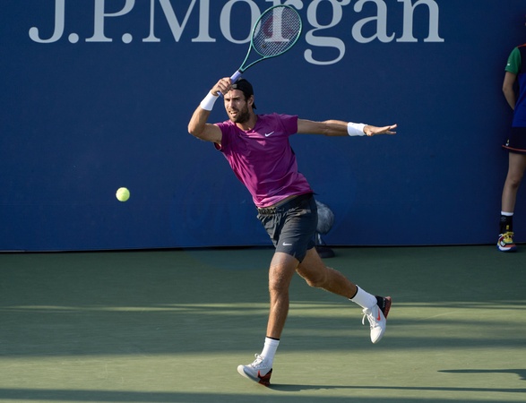 Karen Khachanov plays a forehand against Daniel Evans (GBR) during the longest match in US Open history in the first round on court 6 at the 2024 US Open Tennis Championships at the National Tennis centre, New York, New York, 27 Aug 2024., Credit:Peter van den Berg / Avalon