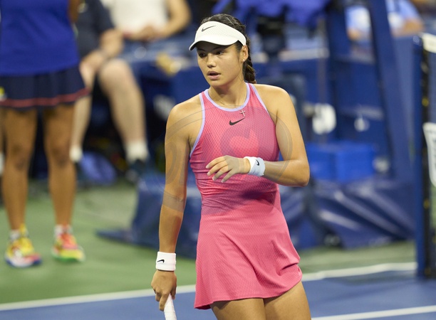 Emma Raducanu (GBR) looks to her coaches when playing against Sofia Kenin (USA) in the first round on grandstand at the 2024 US Open Tennis Championships at the National Tennis centre, New York, New York, 27 Aug 2024., Credit:Peter van den Berg / Avalon