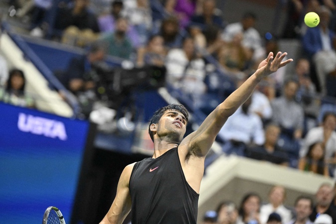 Tennis : Us Open 2024 - Carlos Alcaraz - Espagne - Carlos Alcaraz, vainqueur du match contre Li Tu lors du tournoi de tennis de Flushing Meadows à New York. On August 27th 2024 © Chryslene Caillaud / Panoramic / Bestimage