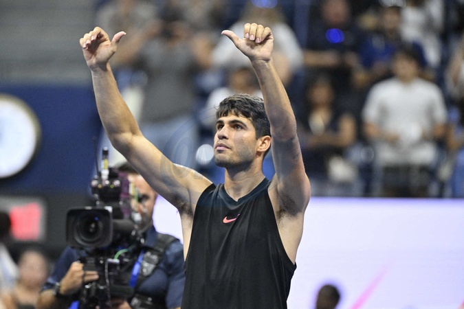 Tennis : Us Open 2024 - Carlos Alcaraz - Espagne - Carlos Alcaraz, vainqueur du match contre Li Tu lors du tournoi de tennis de Flushing Meadows à New York. On August 27th 2024 © Chryslene Caillaud / Panoramic / Bestimage
