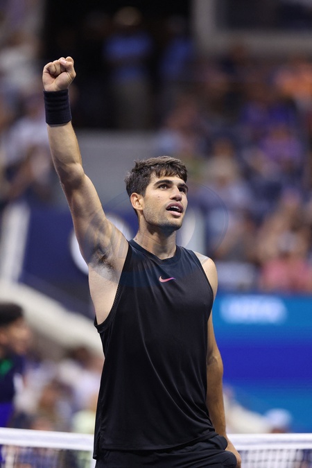 Carlos Alcaraz (Spa) at the US Open 2024 - Carlos Alcaraz, vainqueur du match contre Li Tu lors du tournoi de tennis de Flushing Meadows à New York. Le 27 août 2024 © Antoine Couvercelle / Panoramic / Bestimage