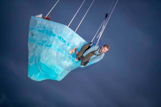 University of East London Docklands campus, UK. Saturday 24th and Sunday 25th August.Thaw is the a performance by Australian theatre company Legs on the wallPerformersperformed for 8 hours on a 2.7 tonne melting ice sculpture which was hoisted at times 20 meters in the air to a score by the Alaskan composer Matthew Burtner.Thaw addresses humankind's impact on the planet. The performance was part of the Greenwich and Docklands International Festival (GDIF) which is on from 23 August - 8th September., Credit:Abdullah Bailey / Avalon