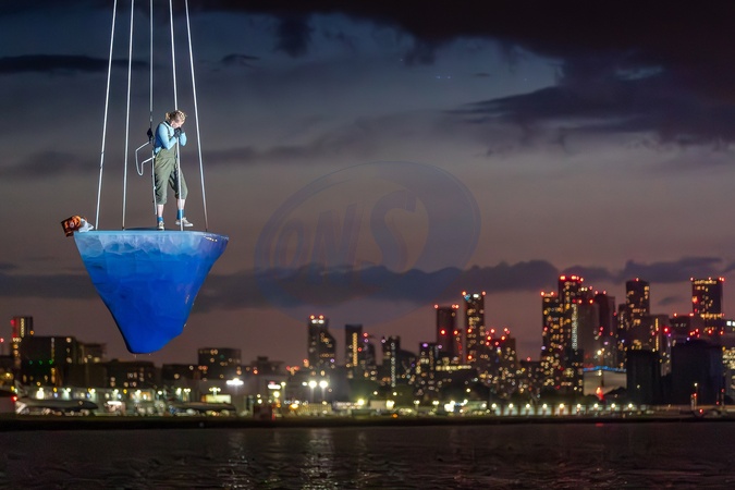 University of East London Docklands campus, UK. Saturday 24th and Sunday 25th August.Thaw is the a performance by Australian theatre company Legs on the wallPerformersperformed for 8 hours on a 2.7 tonne melting ice sculpture which was hoisted at times 20 meters in the air to a score by the Alaskan composer Matthew Burtner.Thaw addresses humankind's impact on the planet. The performance was part of the Greenwich and Docklands International Festival (GDIF) which is on from 23 August - 8th September., Credit:Abdullah Bailey / Avalon