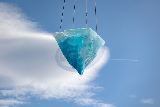 University of East London Docklands campus, UK. Saturday 24th and Sunday 25th August.Thaw is the a performance by Australian theatre company Legs on the wallPerformersperformed for 8 hours on a 2.7 tonne melting ice sculpture which was hoisted at times 20 meters in the air to a score by the Alaskan composer Matthew Burtner.Thaw addresses humankind's impact on the planet. The performance was part of the Greenwich and Docklands International Festival (GDIF) which is on from 23 August - 8th September., Credit:Abdullah Bailey / Avalon