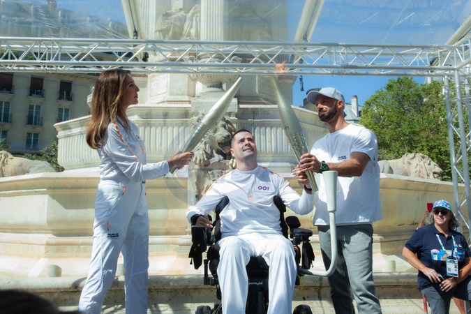 Elsa Zylberstein niesie płomień Igrzysk Paraolimpijskich w Paryżu, na kilka godzin przed ceremonią otwarcia