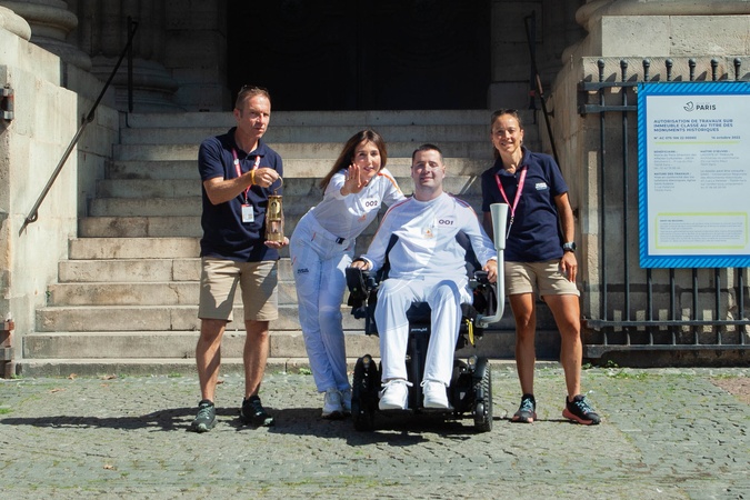 Elsa Zylberstein niesie płomień Igrzysk Paraolimpijskich w Paryżu, na kilka godzin przed ceremonią otwarcia
