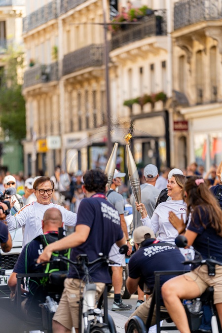 Jackie Chan porte la flamme des Jeux Paralympiques de Paris 2024, quelques heures avant la cérémonie d'ouverture