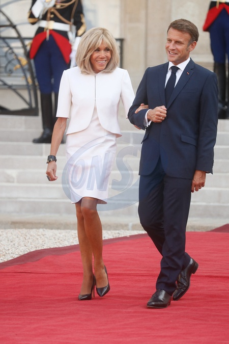 Le président Emmanuel Macron et sa femme Brigitte Macron accueillent les chefs d'état, de gouvernement et d'organisations internationales en amont de la cérémonie d'ouverture des jeux paralympiques de Paris 2024 au palais de l'Elysée à Paris