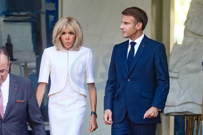 Brigitte Macron, Emmanuel Macron - Réception des chefs d'état, de gouvernement et d'organisation internationale en amont de la cérémonie d'ouverture des jeux paralympiques de Paris 2024 au palais de l'Elysée à Paris, France, le 28 août 2024. © Christophe Clovis / Bestimage President E.Macron and his wife B.Macron welcome heads of state, government and international organisations ahead of the opening ceremony of the Paris 2024 Paralympic Games at the Elysée Palace in Paris on august 28th 2024