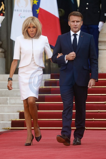 Brigitte Macron, Emmanuel Macron - Réception des chefs d'état, de gouvernement et d'organisation internationale en amont de la cérémonie d'ouverture des jeux paralympiques de Paris 2024 au palais de l'Elysée à Paris, France, le 28 août 2024. © Christophe Clovis / Bestimage President E.Macron and his wife B.Macron welcome heads of state, government and international organisations ahead of the opening ceremony of the Paris 2024 Paralympic Games at the Elysée Palace in Paris on august 28th 2024