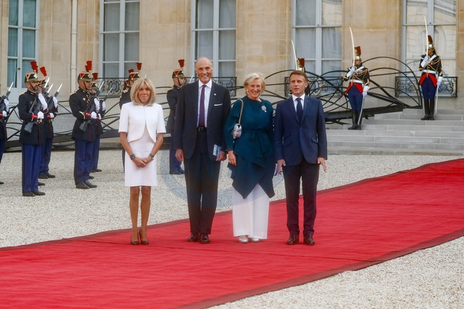 Prezydent Emmanuel Macron i jego żona Brigitte Macron witają głowy państw, rządów i organizacji międzynarodowych przed ceremonią otwarcia Igrzysk Paraolimpijskich Paryż 2024 w Pałacu Elizejskim w Paryżu
