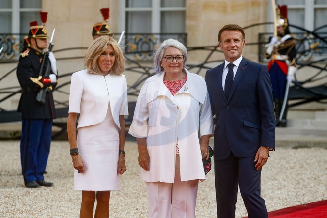Prezydent Emmanuel Macron i jego żona Brigitte Macron witają głowy państw, rządów i organizacji międzynarodowych przed ceremonią otwarcia Igrzysk Paraolimpijskich Paryż 2024 w Pałacu Elizejskim w Paryżu