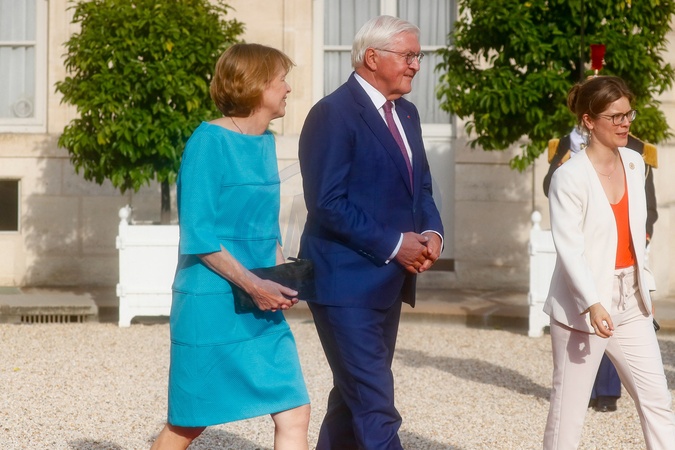 Frank-Walter Steinmeier (président de la république fédérale d'Allemagne) et sa femme Elke Büdenbende - Réception des chefs d'état, de gouvernement et d'organisation internationale en amont de la cérémonie d'ouverture des jeux paralympiques de Paris 2024 au palais de l'Elysée à Paris, France, le 28 août 2024. © Christophe Clovis / Bestimage President E.Macron and his wife B.Macron welcome heads of state, government and international organisations ahead of the opening ceremony of the Paris 2024 Paralympic Games at the Elysée Palace in Paris on august 28th 2024