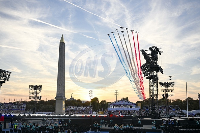Patrouille de France lors de la cérémonie d'ouverture des jeux paralympiques Paris 2024 place de la Concorde à Paris le 28 août 2024. © Perusseau / Jacovides / Bestimage Opening ceremony of the Paris 2024 Paralympic Games at Place de la Concorde in Paris on 28 August 2024.