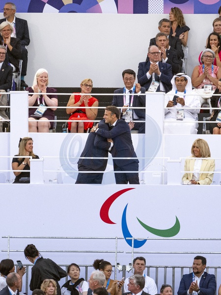 Le prince Albert II de Monaco, Gérald Darmanin, Andrew Parsons, président du comité international paralympique, le président Emmanuel Macron, Brigitte Macron lors de la cérémonie d'ouverture des jeux paralympiques Paris 2024 place de la Concorde à Paris le 28 août 2024. © Perusseau / Jacovides / Bestimage Opening ceremony of the Paris 2024 Paralympic Games at Place de la Concorde in Paris on 28 August 2024.