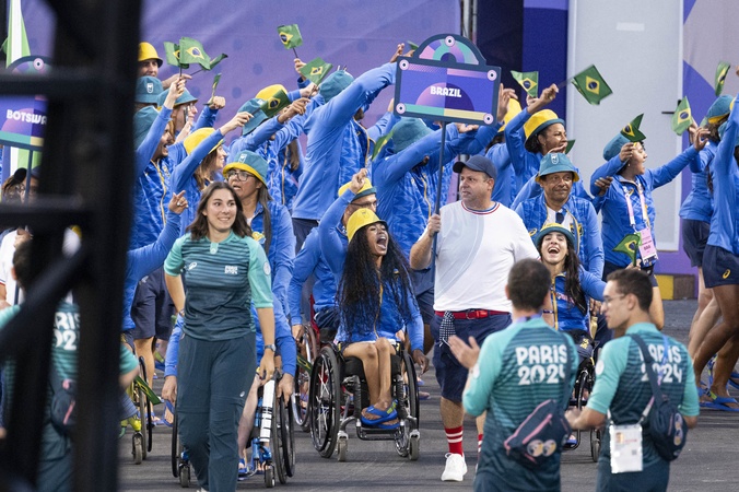 Délégation du Brésil lors de la cérémonie d'ouverture des jeux paralympiques Paris 2024 place de la Concorde à Paris le 28 août 2024. © Perusseau / Jacovides / Bestimage Opening ceremony of the Paris 2024 Paralympic Games at Place de la Concorde in Paris on 28 August 2024.