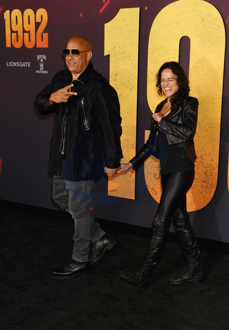 LOS ANGELES, CALIFORNIA - AUGUST 27: (L-R) Vin Diesel and Michelle Rodriguez attend the "1992" Los Angeles Premiere at Regal LA Live on August 27, 2024 in Los Angeles, California., Credit:Jeffrey Mayer / Avalon