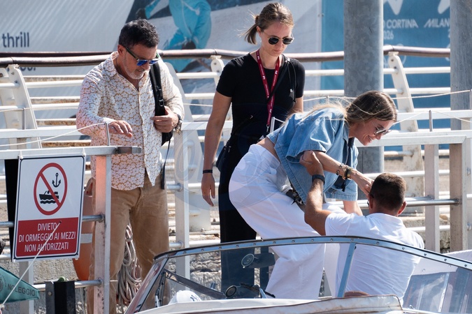 Antonio Banderas et sa compagne Nicole Kimpel arrivent à Venise, lors du 81ème Festival International du Film de Venise (Mostra), le 29 août 2024. Antonio Banderas and his partner Nicole Kimpel arrive in Venice, during the 81st Venice International Film Festival (Mostra), on August 29, 2024.
