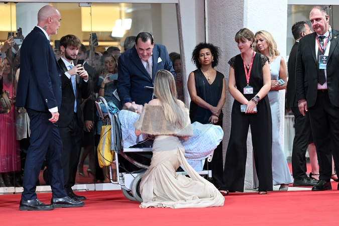 Angelina Jolie talk to a disabled boy during Maria red carpet - 81st Venice Film Festival, Italy - 29 Aug 2024, Credit:Maria Laura Antonelli / Avalon