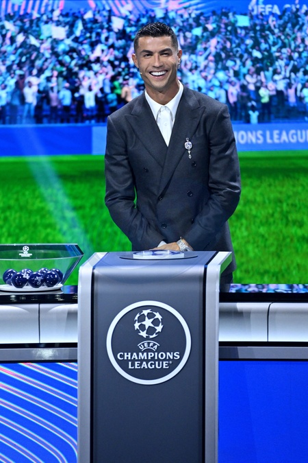 Cristiano Ronaldo reçoit le prix de meilleur buteur de tous les temps lors du tirage au sort UEFA pour la saison 2024/2025 au forum Grimaldi à Monaco