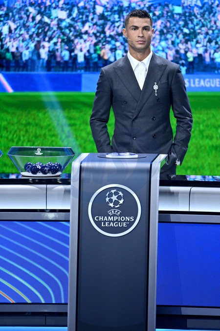 Cristiano Ronaldo durant le tirage au sort des rencontres de la phase régulière de la Ligue des champions pour la saison 2024-2025 et remises du prix du meilleur buteur de tous les temps de l'UEFA Champions League à Cristiano Ronaldo et du Prix du président de l'UEFA 2024 à Gianluigi Buffon, au Grimaldi Forum à Monaco, le 29 août 2024. © Bruno Bebert / Bestimage C.Ronaldo receives the award for all-time top scorer at the UEFA draw for the 2024/2025 season at the Grimaldi Forum in Monaco on august 29th 2024