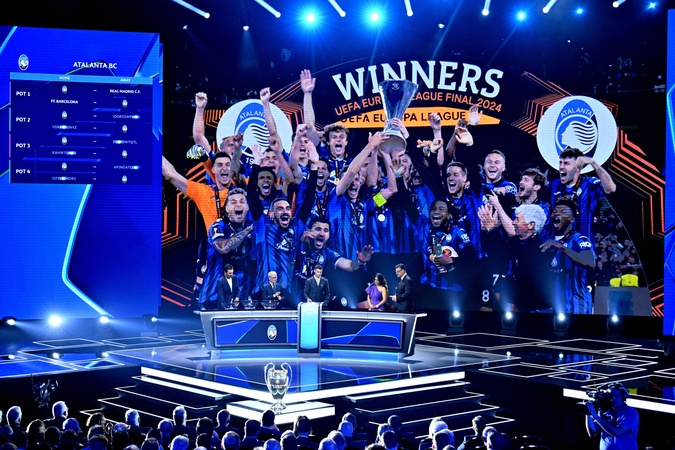 Cristiano Ronaldo reçoit le prix de meilleur buteur de tous les temps lors du tirage au sort UEFA pour la saison 2024/2025 au forum Grimaldi à Monaco