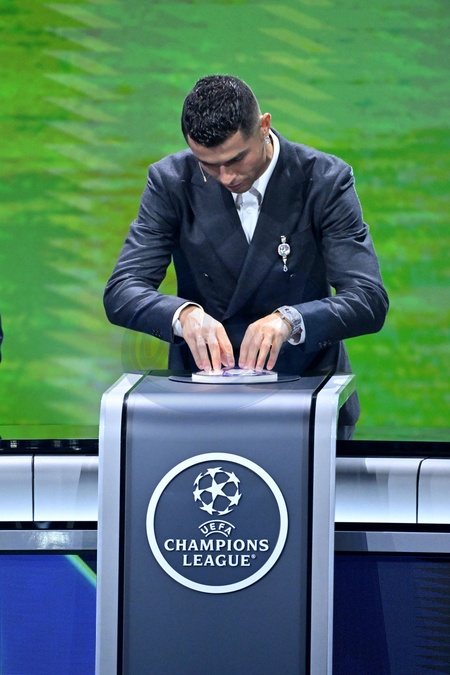 Cristiano Ronaldo durant le tirage au sort des rencontres de la phase régulière de la Ligue des champions pour la saison 2024-2025 et remises du prix du meilleur buteur de tous les temps de l'UEFA Champions League à Cristiano Ronaldo et du Prix du président de l'UEFA 2024 à Gianluigi Buffon, au Grimaldi Forum à Monaco, le 29 août 2024. © Bruno Bebert / Bestimage C.Ronaldo receives the award for all-time top scorer at the UEFA draw for the 2024/2025 season at the Grimaldi Forum in Monaco on august 29th 2024