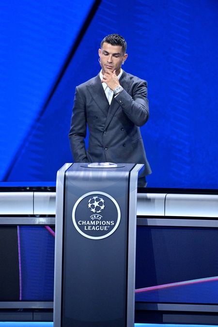 Cristiano Ronaldo durant le tirage au sort des rencontres de la phase régulière de la Ligue des champions pour la saison 2024-2025 et remises du prix du meilleur buteur de tous les temps de l'UEFA Champions League à Cristiano Ronaldo et du Prix du président de l'UEFA 2024 à Gianluigi Buffon, au Grimaldi Forum à Monaco, le 29 août 2024. © Bruno Bebert / Bestimage C.Ronaldo receives the award for all-time top scorer at the UEFA draw for the 2024/2025 season at the Grimaldi Forum in Monaco on august 29th 2024