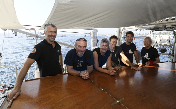 Exclusif - Agnès B. et son équipage à bord de la goélette "Tara" à Antibes dans le cadre du projet mené par la Fondation Tara Océan le 29 aoôut 2024. La Fondation Tara Océan est la première Fondation Reconnue d'Utilité Publique (FRUP) consacrée à l'Océan en France. Elle mène depuis 2003 des expéditions scientifiques pour étudier la biodiversité marine, ainsi qu'observer et anticiper les impacts du changement climatique et des pollutions. Grâce à son statut d'Observateur Spécial à l'ONU, elle participe activement aux décisions importantes pour l'Océan. © Patrice Lapoirie / Nice Matin / Bestimage Exclusive - For Germany call for price - Agnès B. and her crew aboard the schooner "Tara" in Antibes as part of the project led by the Tara Océan Foundation on August 29, 2024. The Tara Ocean Foundation is the first Recognized Public Utility Foundation (FRUP) dedicated to the Ocean in France. Since 2003, she has been leading scientific expeditions to study marine biodiversity, as well as observe and anticipate the impacts of climate change and pollution. Thanks to its status as Special Observer at the UN, it actively participates in important decisions for the Ocean.