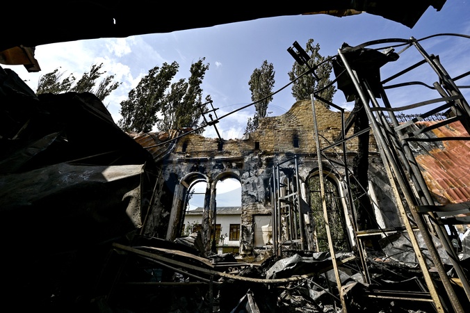 ZAPORIZHZHIA REGION, UKRAINE - AUGUST 28, 2024 - The building of the Huliaipole District Museum of Local Lore burned down as a result of Russian shelling on August 24 in the frontline city of Huliaipole, Polohy district, Zaporizhzhia region, southeastern Ukraine, Credit:Dmytro Smolienko / Avalon