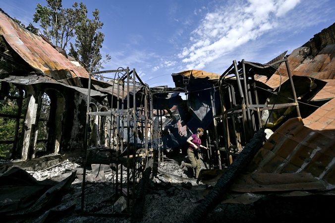 ZAPORIZHZHIA REGION, UKRAINE - AUGUST 28, 2024 - The building of the Huliaipole District Museum of Local Lore burned down as a result of Russian shelling on August 24 in the frontline city of Huliaipole, Polohy district, Zaporizhzhia region, southeastern Ukraine, Credit:Dmytro Smolienko / Avalon