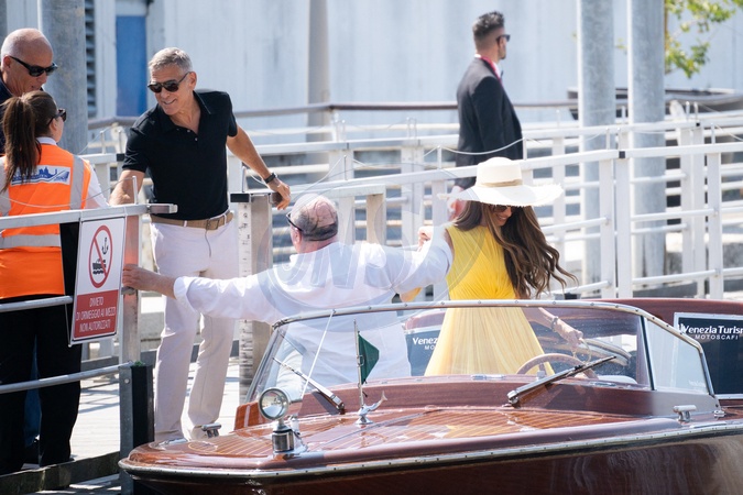 George Clooney i jego żona Amal Clooney przybywają do Lido podczas 81. Międzynarodowego Festiwalu Filmowego w Wenecji (Mostra)
