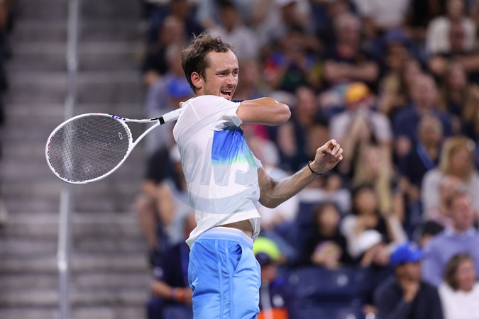 Jannik Sinner, Arthur Fils, Daniił Miedwiediew podczas turnieju tenisowego US Open w Nowym Jorku